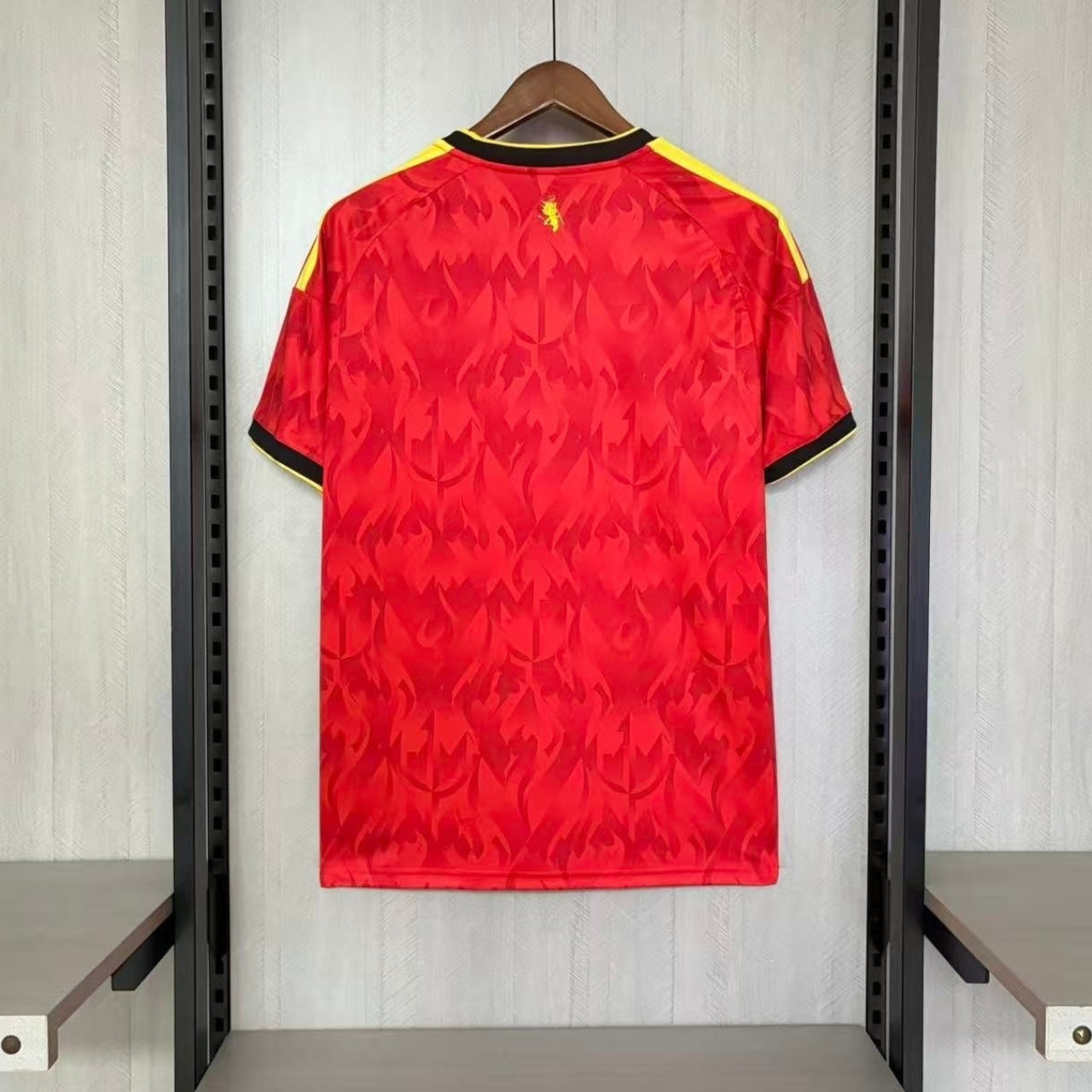 Represent the Red Devils with pride in the Belgium Home Jersey for World Cup 2026. This bold design shows off power, passion, and the country's football history. The jersey features Belgium’s classic red base with striking yellow and black accents. It symbolizes the identity and fighting spirit of the Belgium national football team on the world’s biggest stage.