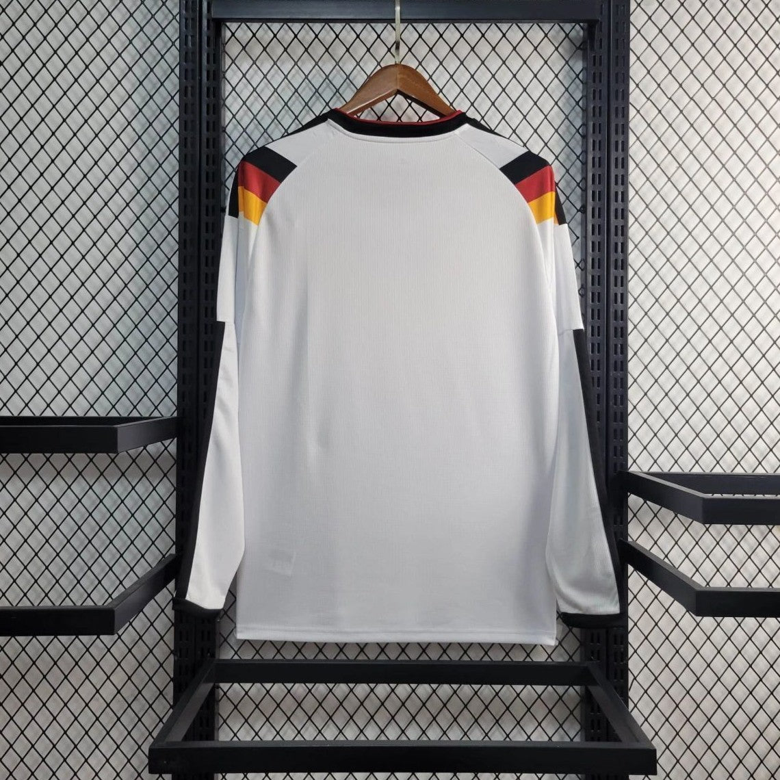 Celebrate football excellence with the Germany Home Full Sleeve Jersey for the World Cup 2026. Designed in a clean white base with striking black, red, and gold accents, this jersey reflects the pride and legacy of Germany national football team. The lightweight, breathable fabric offers superior comfort for long match days, training sessions, or everyday wear. Its full sleeve construction provides a modern, premium look while ensuring flexibility and durability. Perfect for supporters looking to showcase their passion during the FIFA World Cup 2026 and beyond.