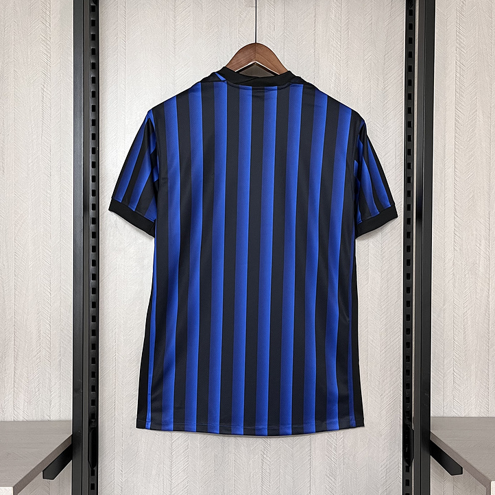 The jersey proudly displays the updated club crest, subtly embossed within the stripes, and is paired with a sleek V-neck collar and streamlined sleeve cuffs for a sharp, contemporary look. A nod to the club’s legacy is stitched inside the collar with the words “Internazionale 1908”, honoring over a century of football excellence.