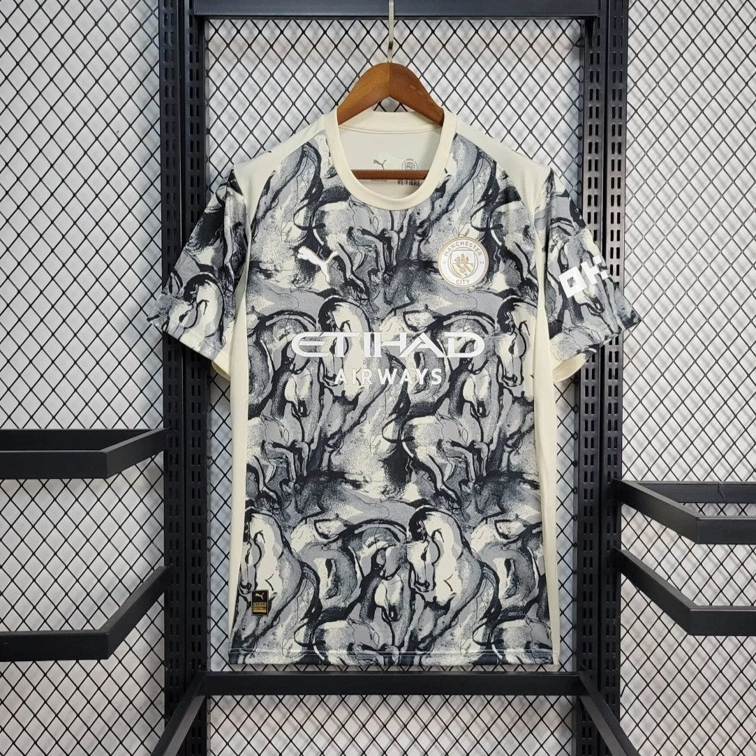 Step into a fusion of culture and football style with the Manchester City Year of the Horse Special Edition Jersey. Featuring a striking horse inspired graphic design, this jersey represents power, agility, and progress values closely linked with the club’s modern era. Made from soft, lightweight, and breathable fabric, it ensures comfort throughout match days or casual outings. The refined detailing, sponsor print, and club crest complete this exclusive look, making it a perfect addition for Manchester City supporters and special edition jersey collectors.
