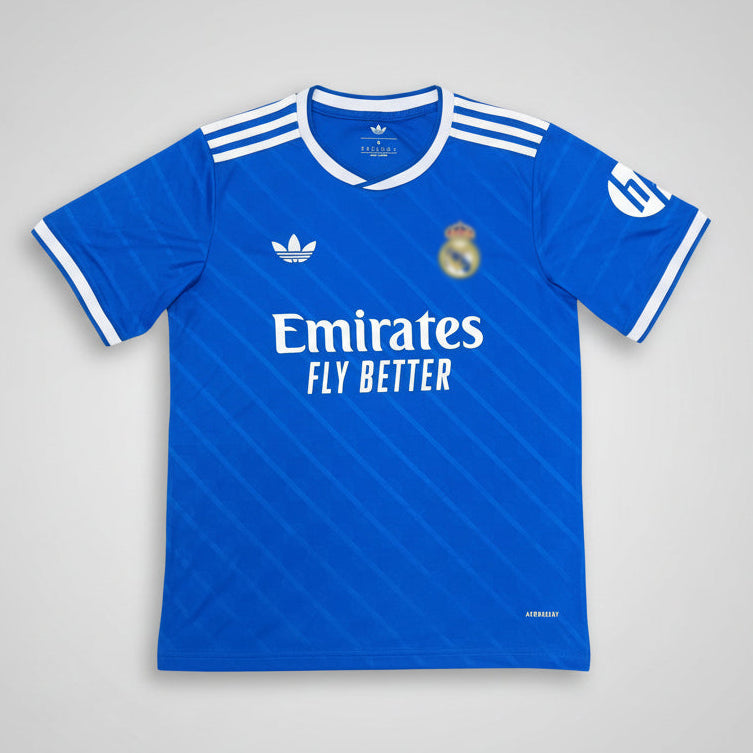 Show your support in iconic style with the RL Madrid Mbappé 10 Third Jersey 25/26 Season. Designed in a striking blue colourway, this third jersey features Mbappé’s name and number 10 on the back, delivering a bold and modern match day look. Crafted from lightweight, breathable fabric with a comfortable athletic fit, it’s perfect for playing football, casual wear, or cheering on your team. A must have jersey for Real Madrid fans and Mbappé supporters alike.