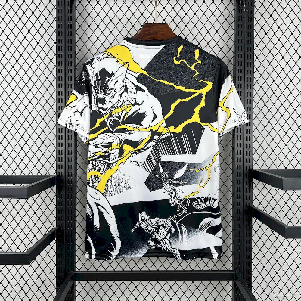 Make a bold statement before kick-off with the RL Madrid x Marvel Pre Match Jersey 2026 Season. Featuring dynamic Marvel inspired graphics and a modern athletic silhouette, this jersey blends football culture with superhero energy. Crafted from lightweight, breathable fabric, it offers excellent comfort and freedom of movement during warm ups, training, or everyday wear. The striking black, white, and yellow colourway with premium detailing makes this jersey a standout addition for RL Madrid supporters and Marvel fans alike.